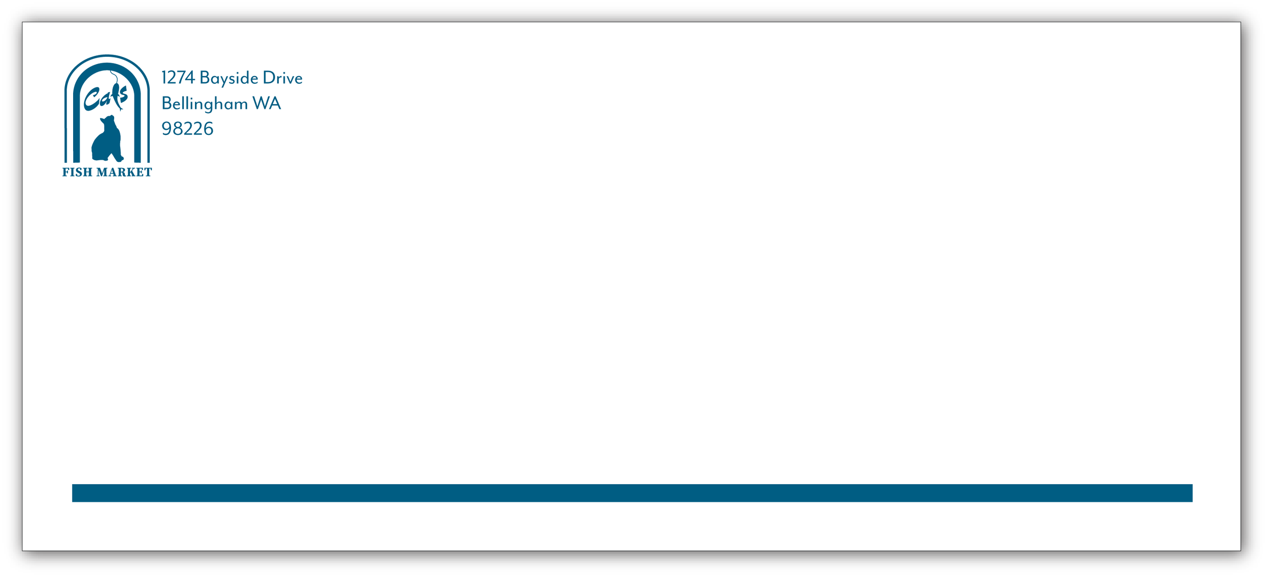 A logo and letterhead design for a local fish market done in two Pantone colors