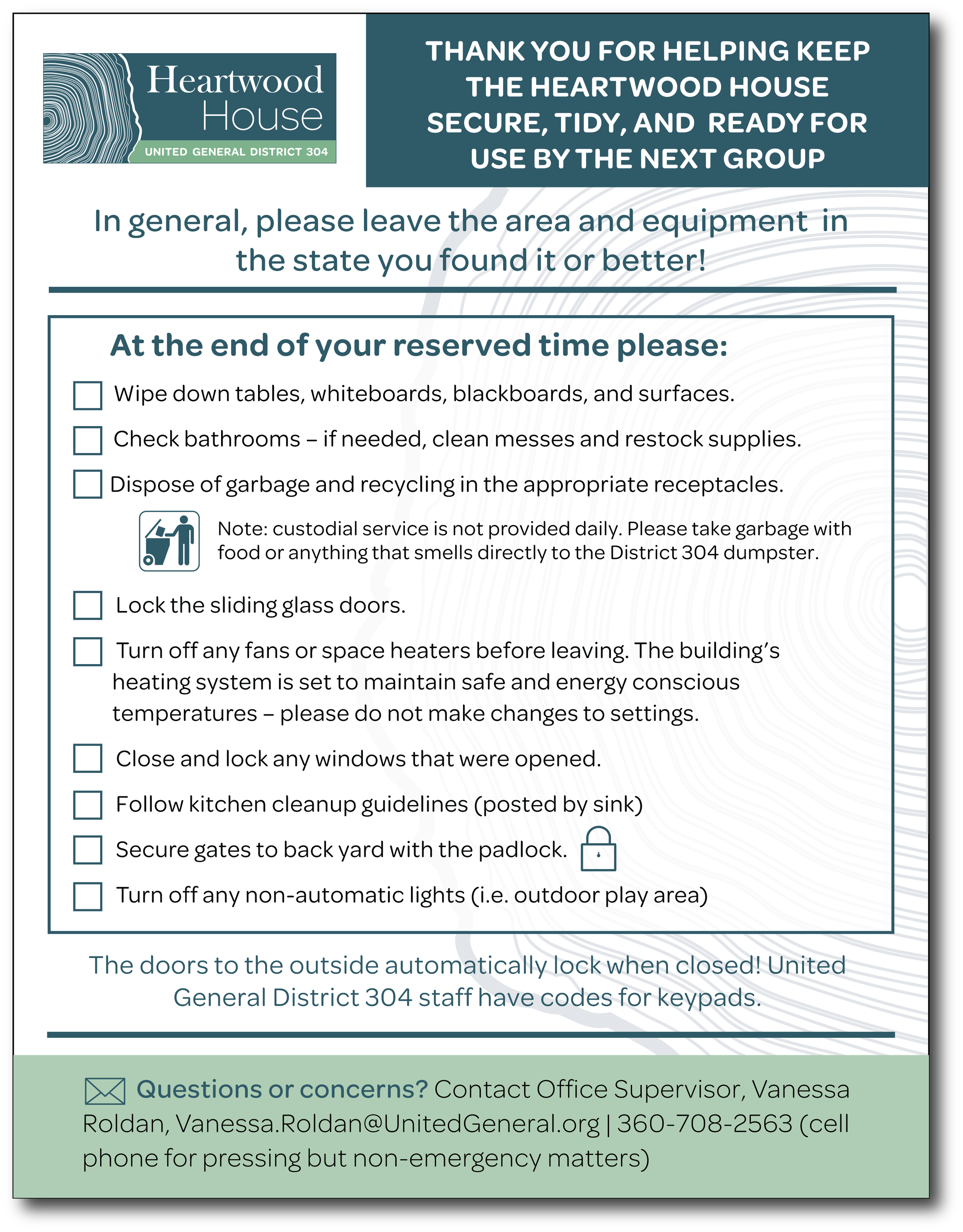 Cleanup guidelines for community space, property of United General District 304